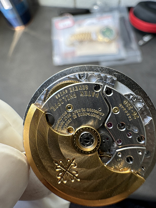 Kaliber 324 SC, Automatik, 28,800 Halbschwingungen pro Stunde. Gangreserve über 45 Stunden. Sekundenstopp für präzise Zeiteinstellung. Gehäuseboden: Genfer Streifen, Perlage. SuperClone-Ganggenauigkeit: ±8 Sekunden/Tag. Weitere Details finden Sie auf unserer Website. FAQ.