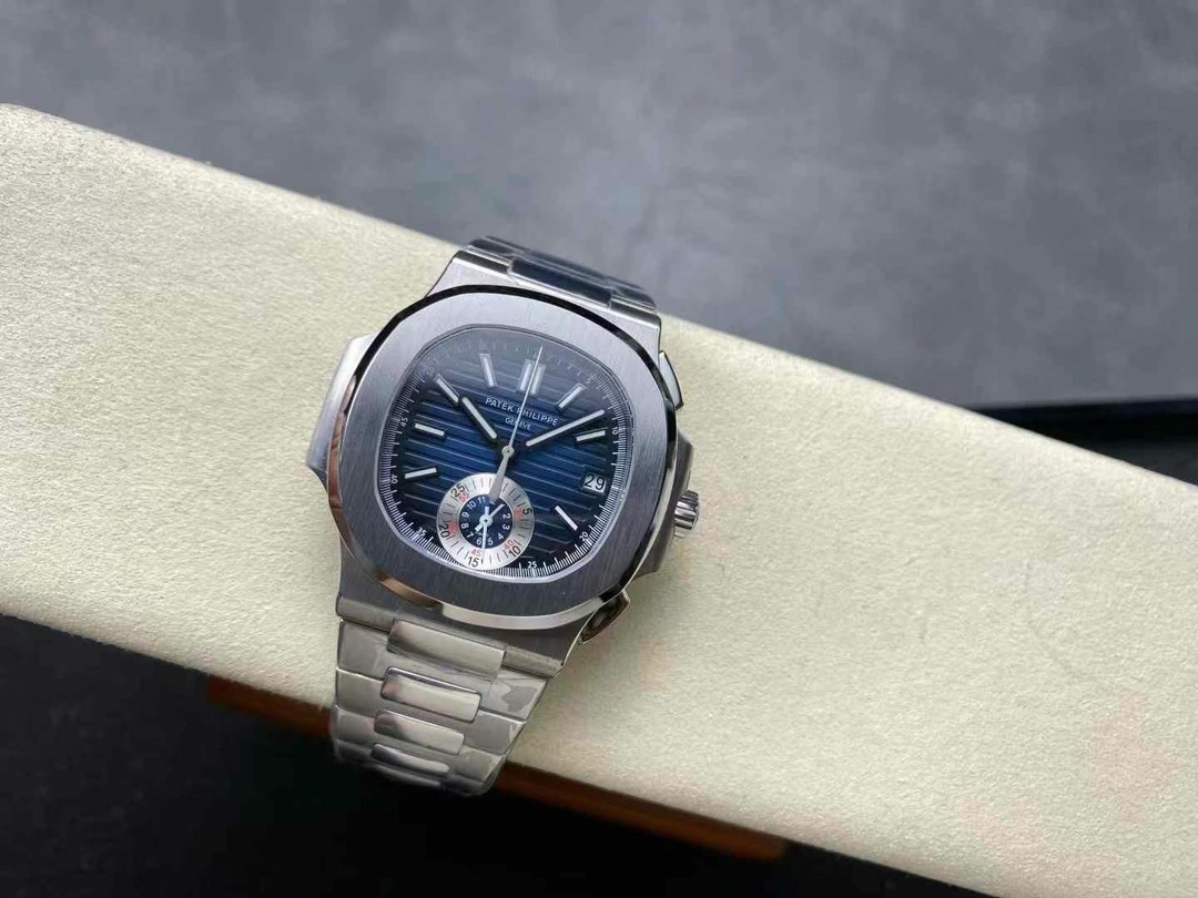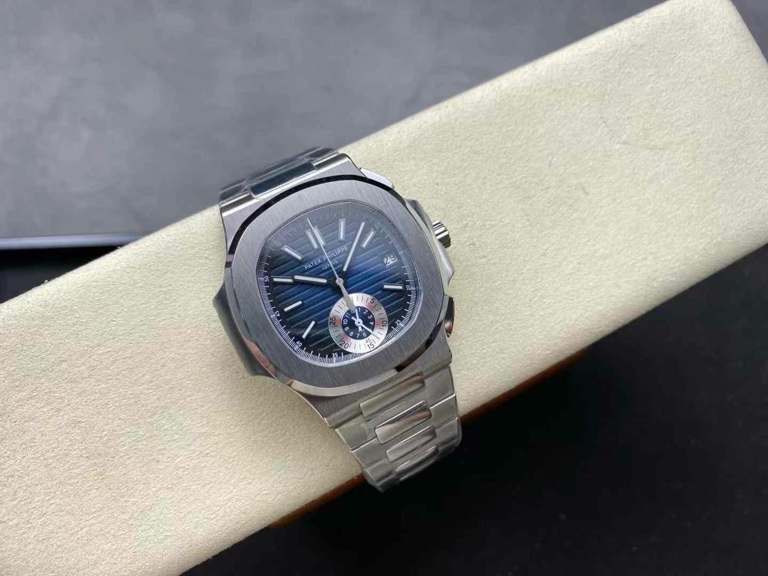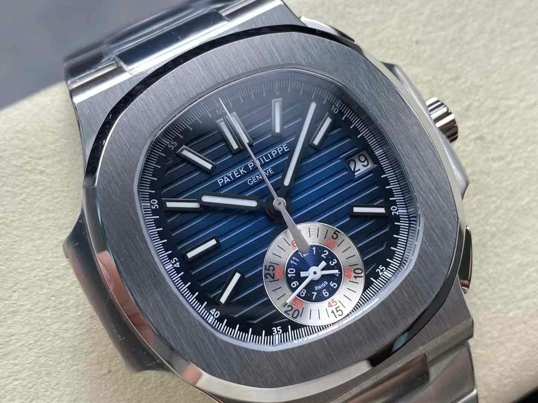 Steel 5980/1A references were discontinued in 2019 and trade $85–110K. This Nautilus 5980 replica is the same 40.5 mm flyback chronograph in silver-dial 904L steel. Full