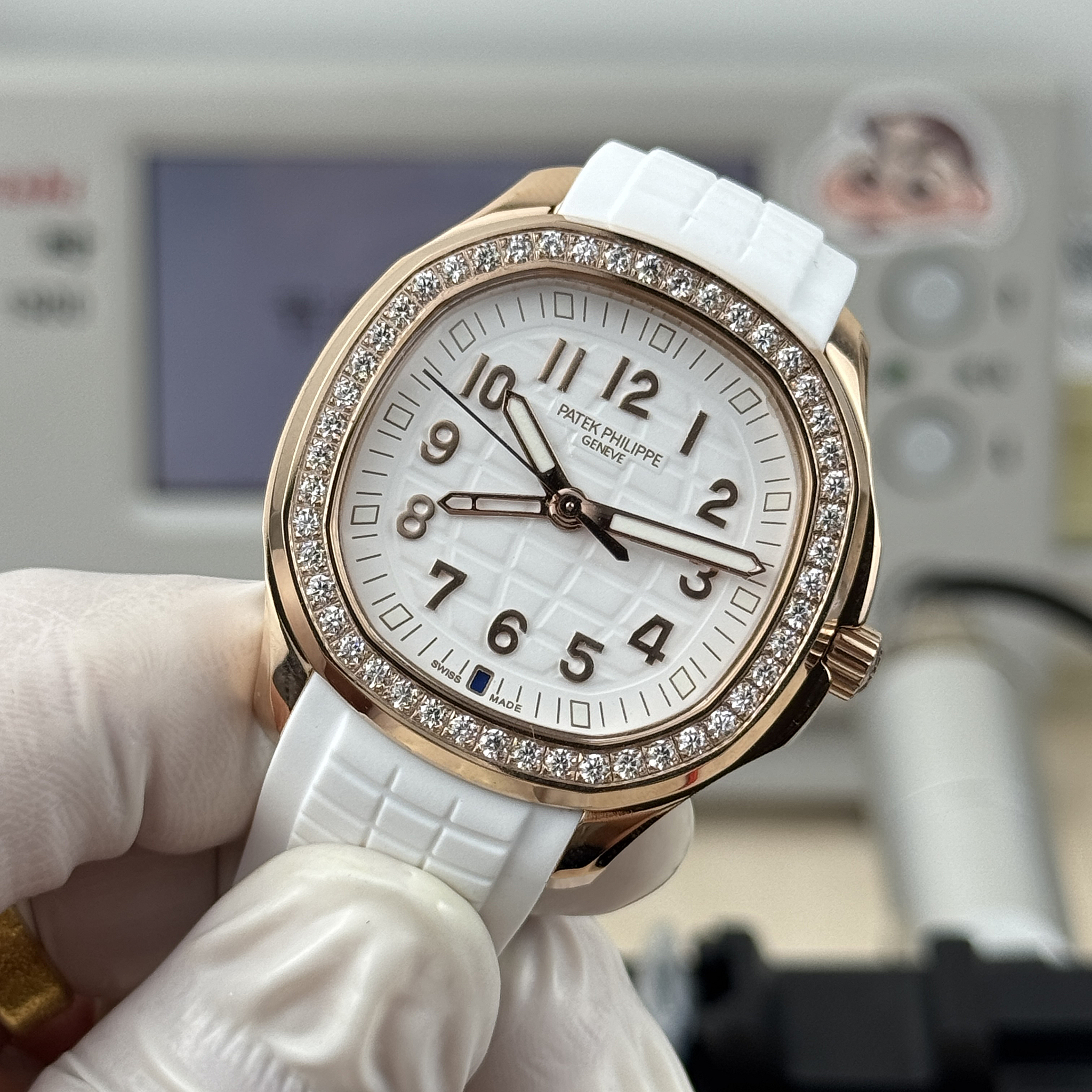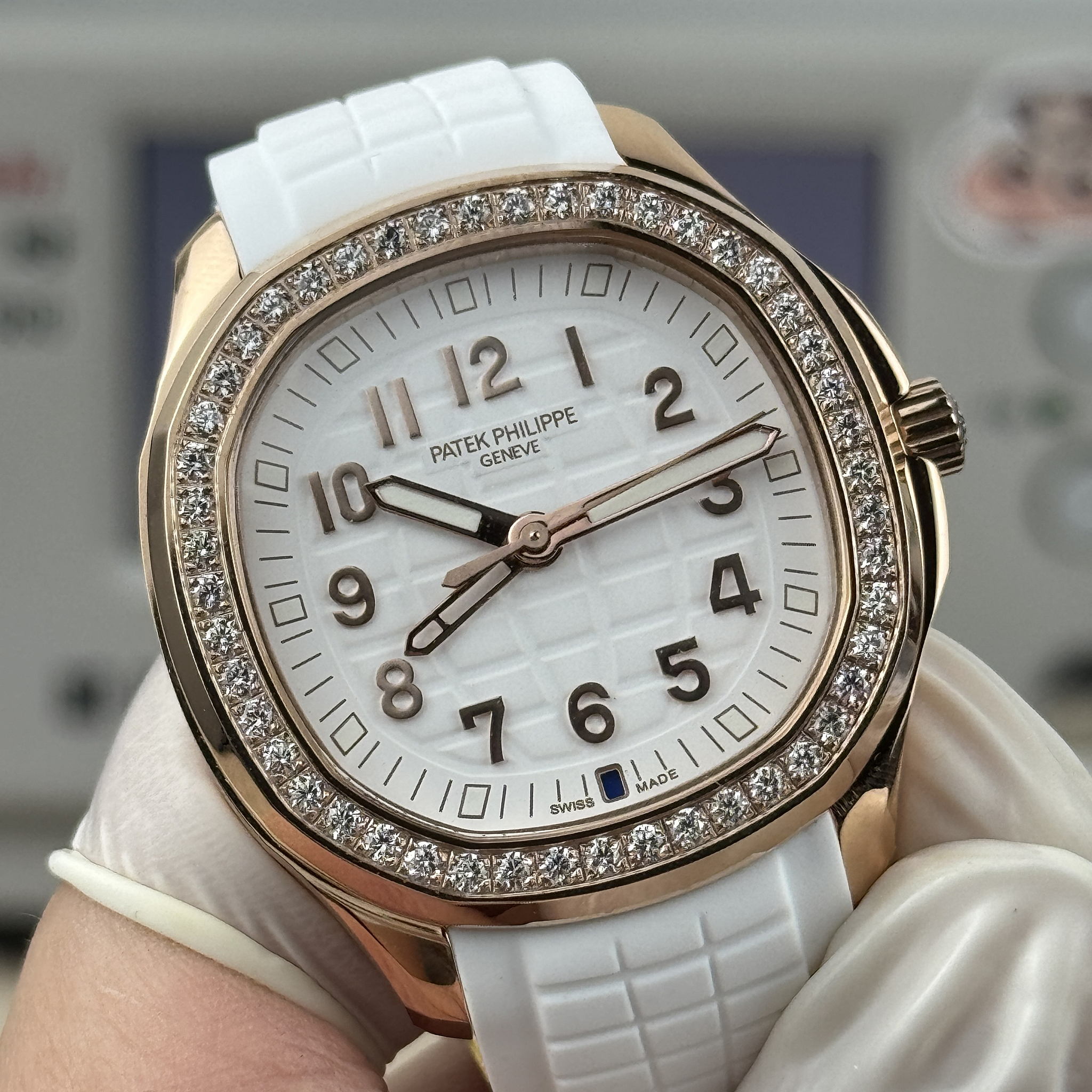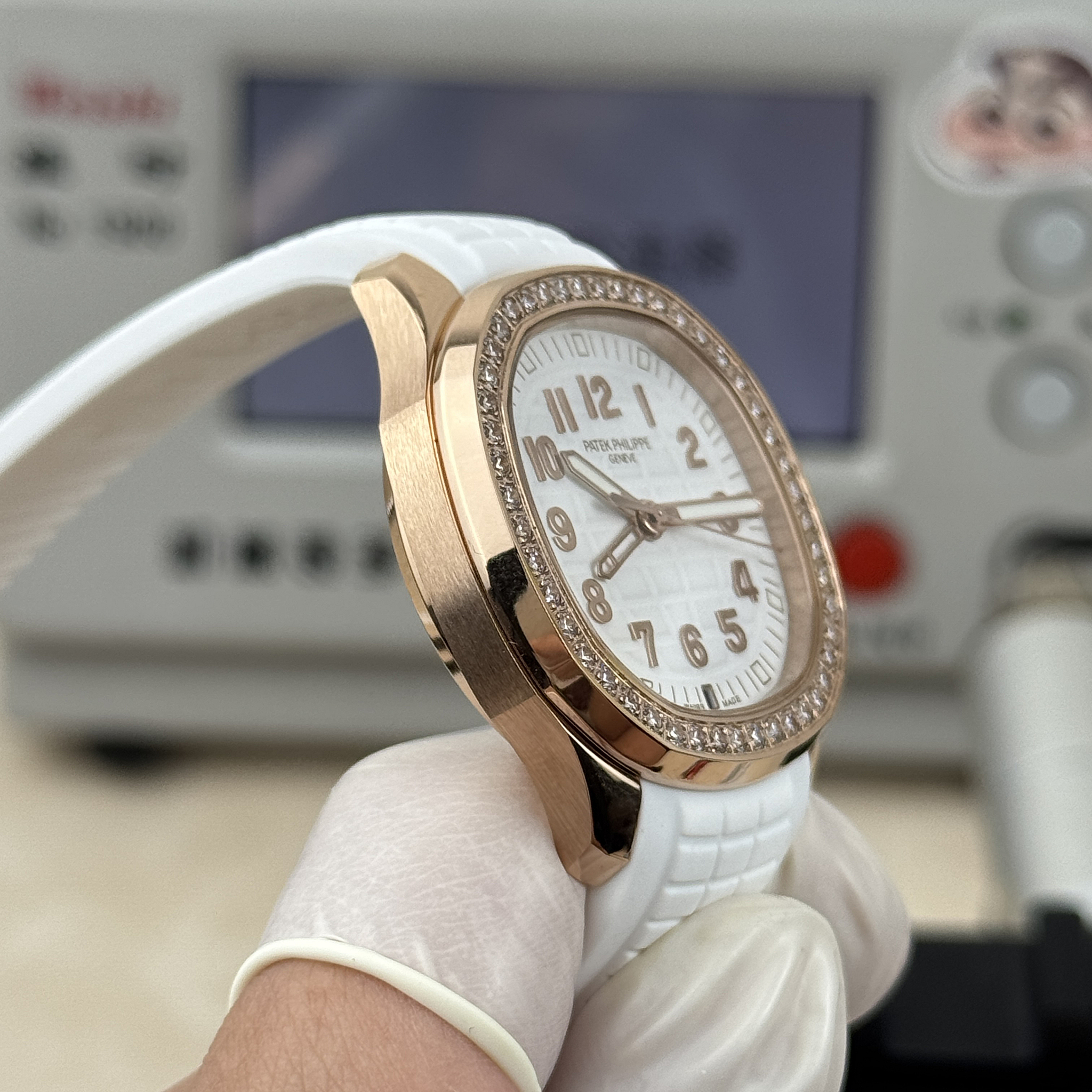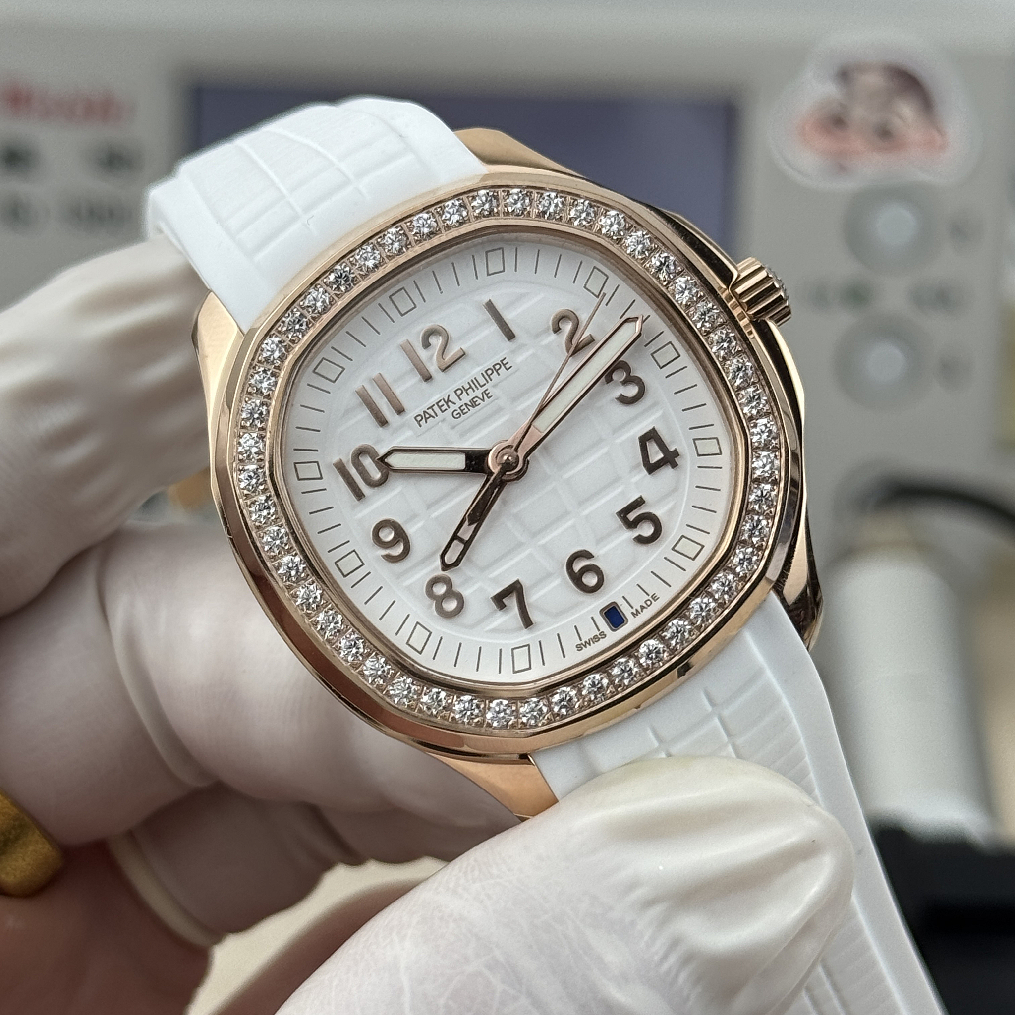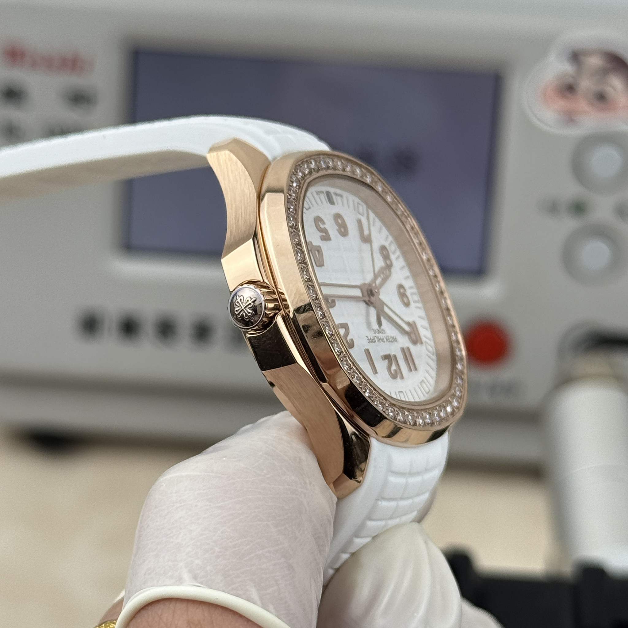 Rose-gold Luce Travel Time originals are among the rarest ladies Aquanaut references. This replica delivers the same 38.8 mm diamond-set dual-timezone sport watch in rose gold with white dial. Full