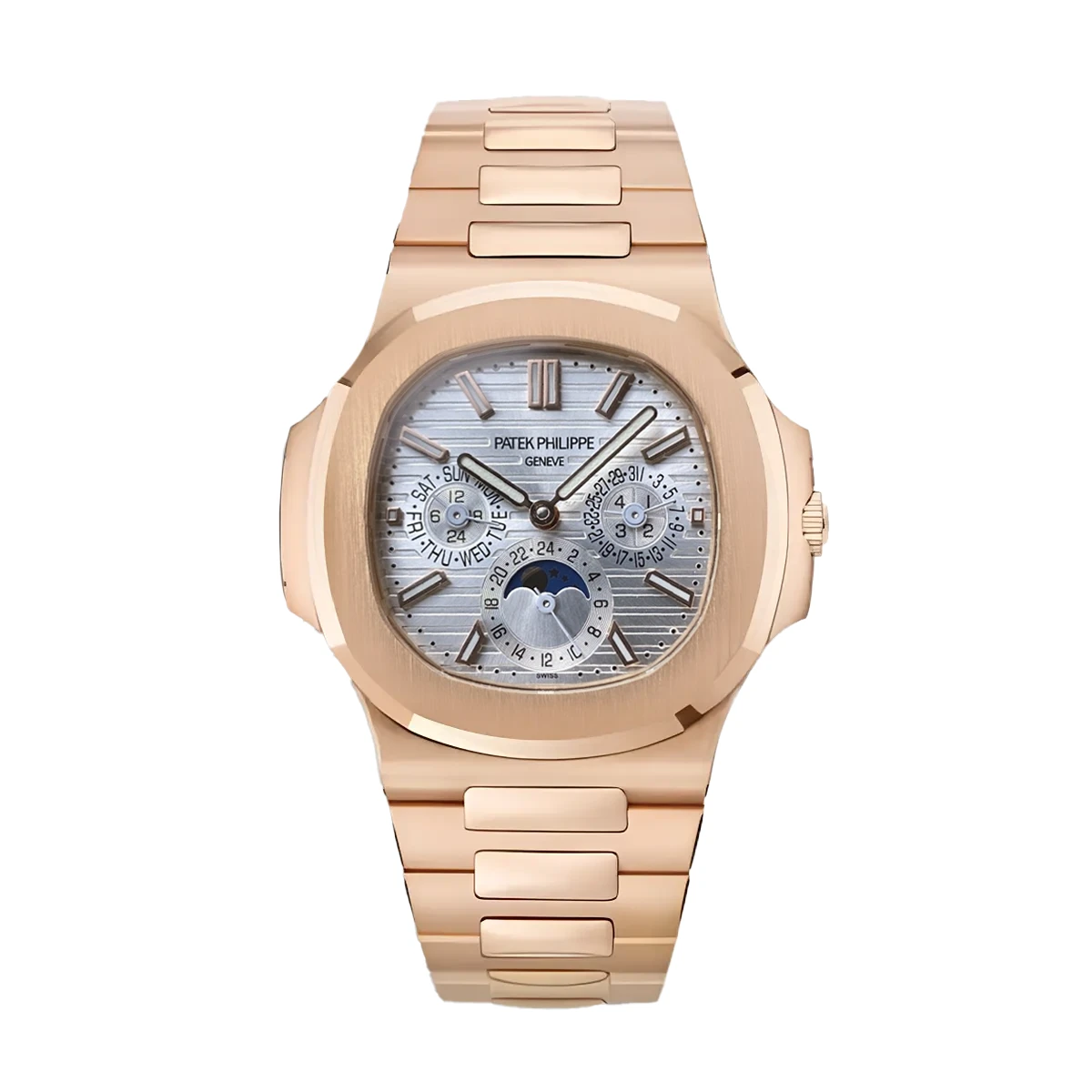 Rose-gold Perpetual Calendar Nautilus originals command well over $200K. This replica Nautilus 5740 delivers the white-dial rose-gold perpetual calendar configuration. Full
