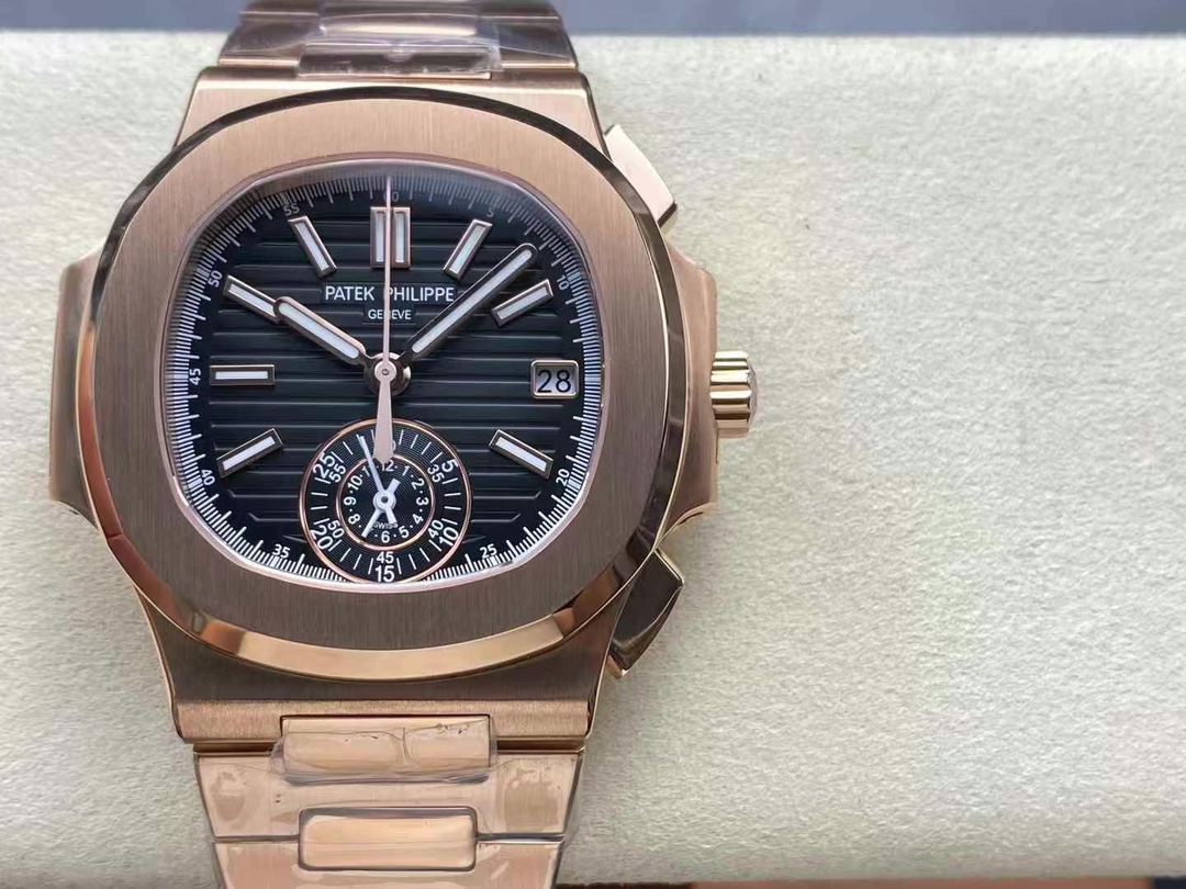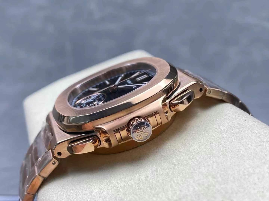 This replica Nautilus 5980/1R-001 is a strong choice for those who want a rose gold chronograph with a dark dial, a wearable size, and practical timing functions for daily use.