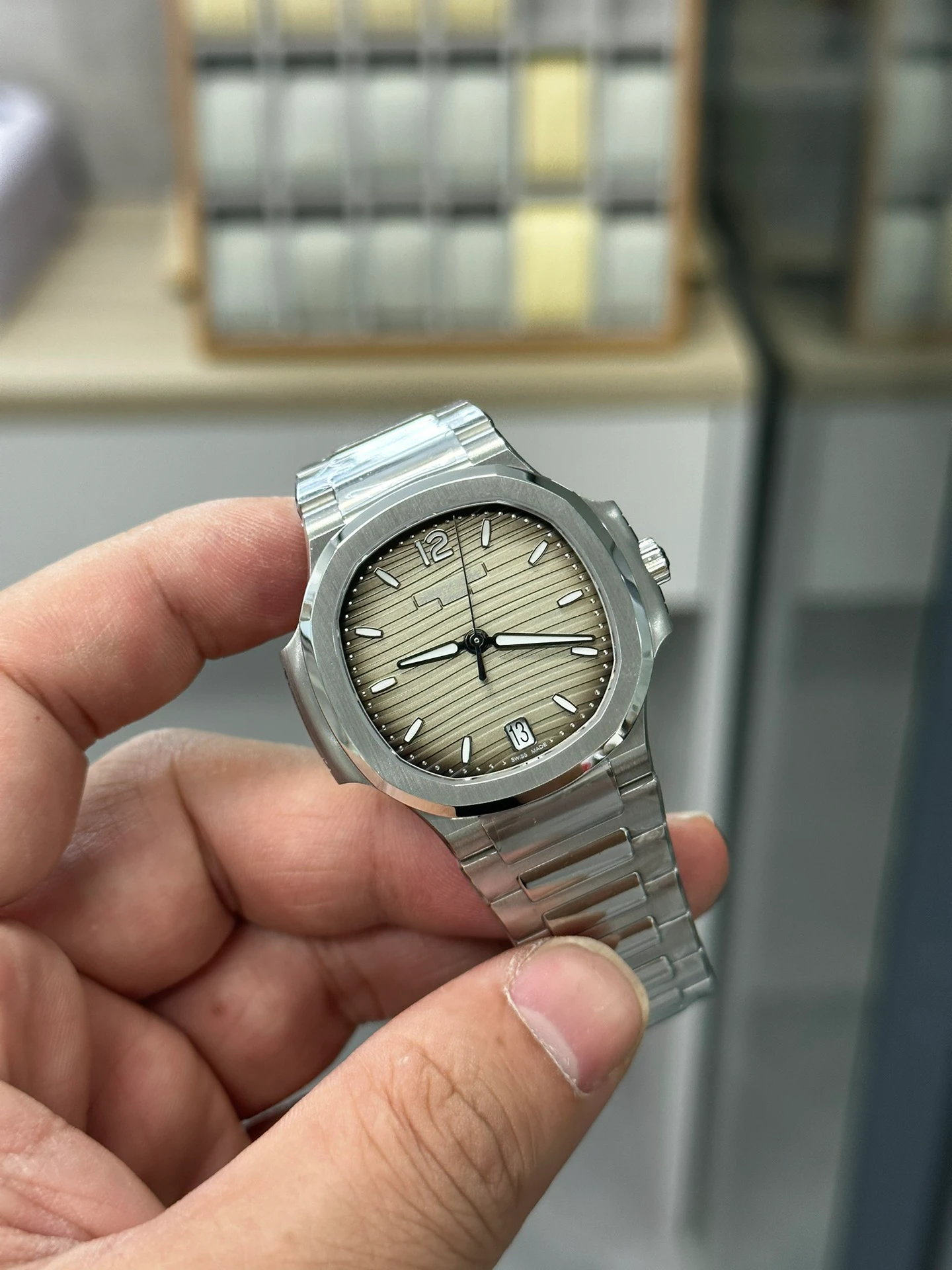 Smoke gray 7118/1A-011 originals trade around $40K. This Nautilus 7118 replica delivers the same gray-dial ladies’ automatic sport watch on integrated bracelet. Full Nautilus collection | Contact us