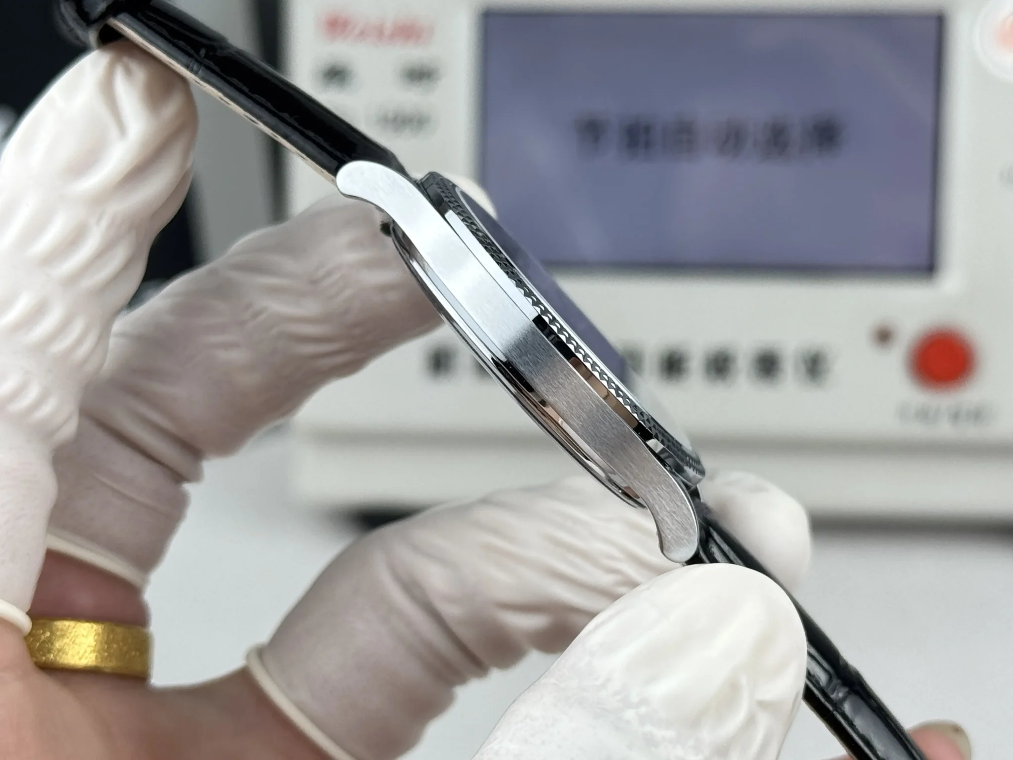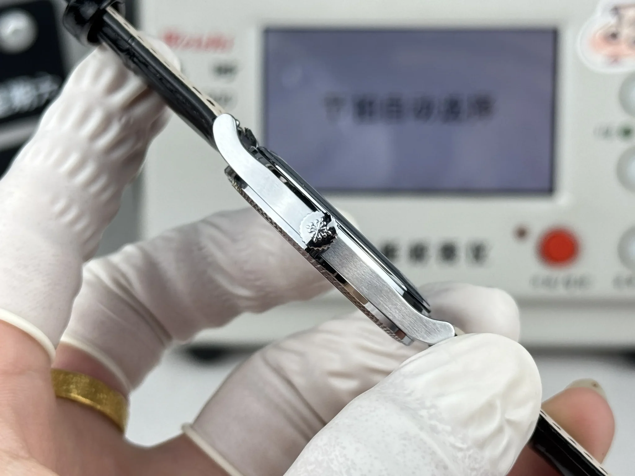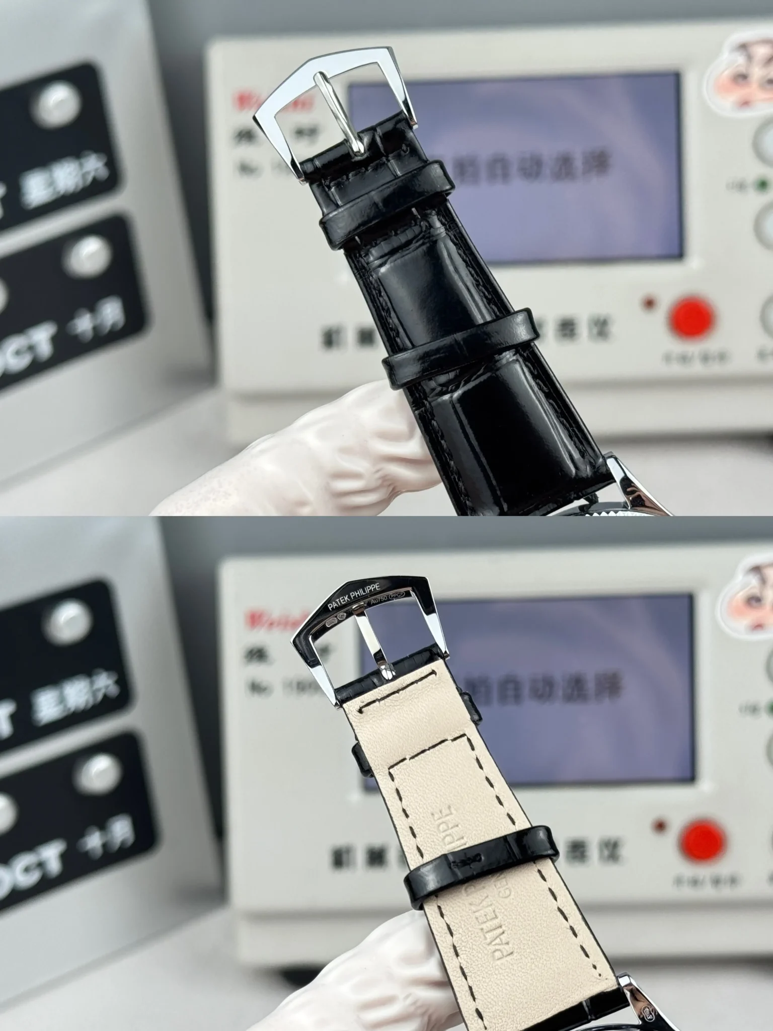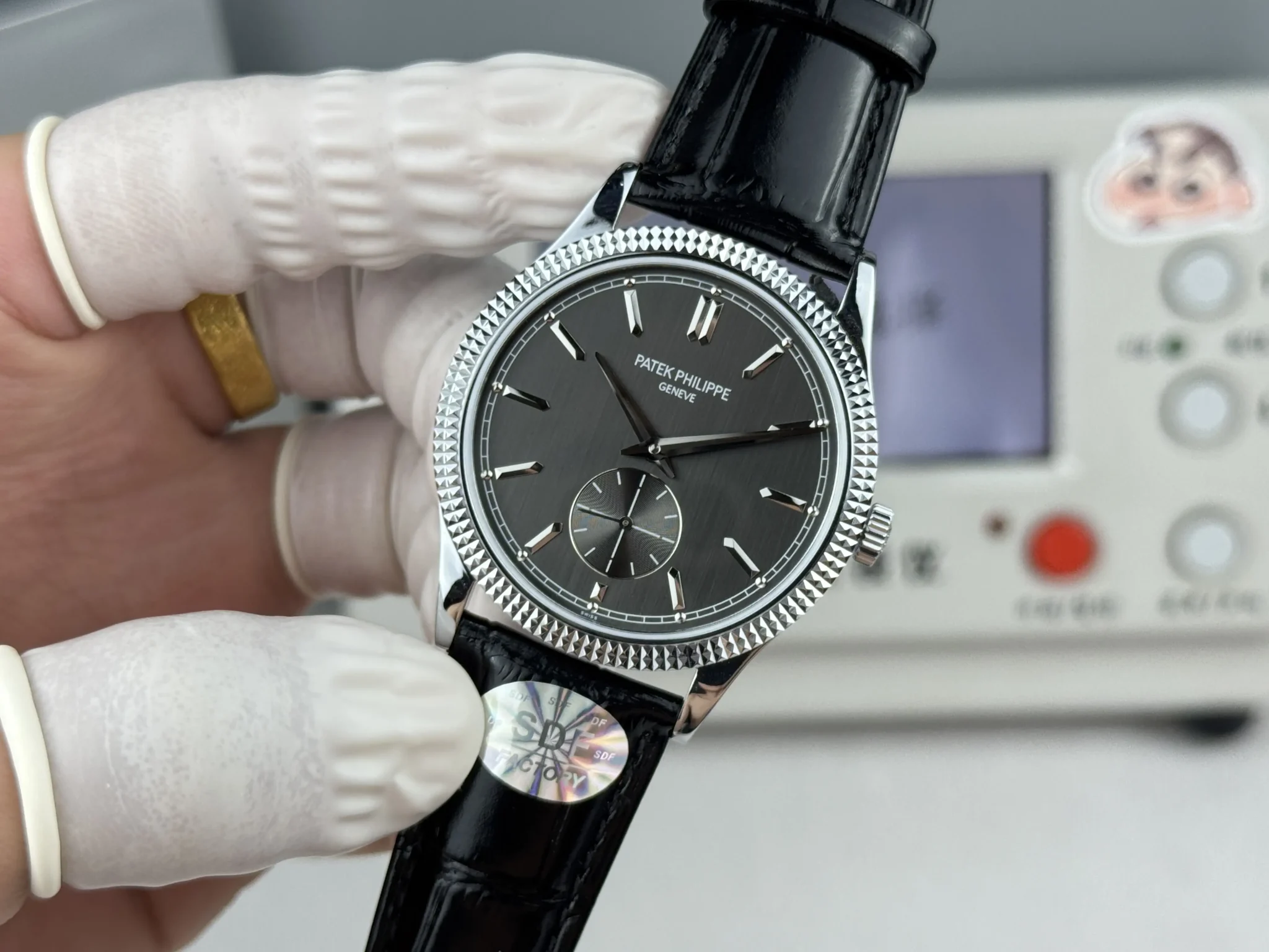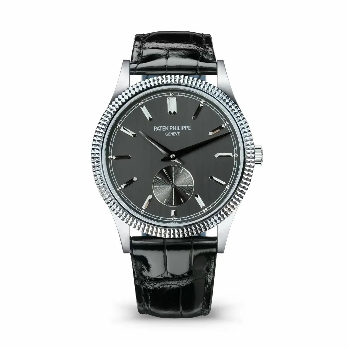 This replica Calatrava is ideal for buyers who want a classic 39mm size with a black dial and a clean, understated white gold finish.