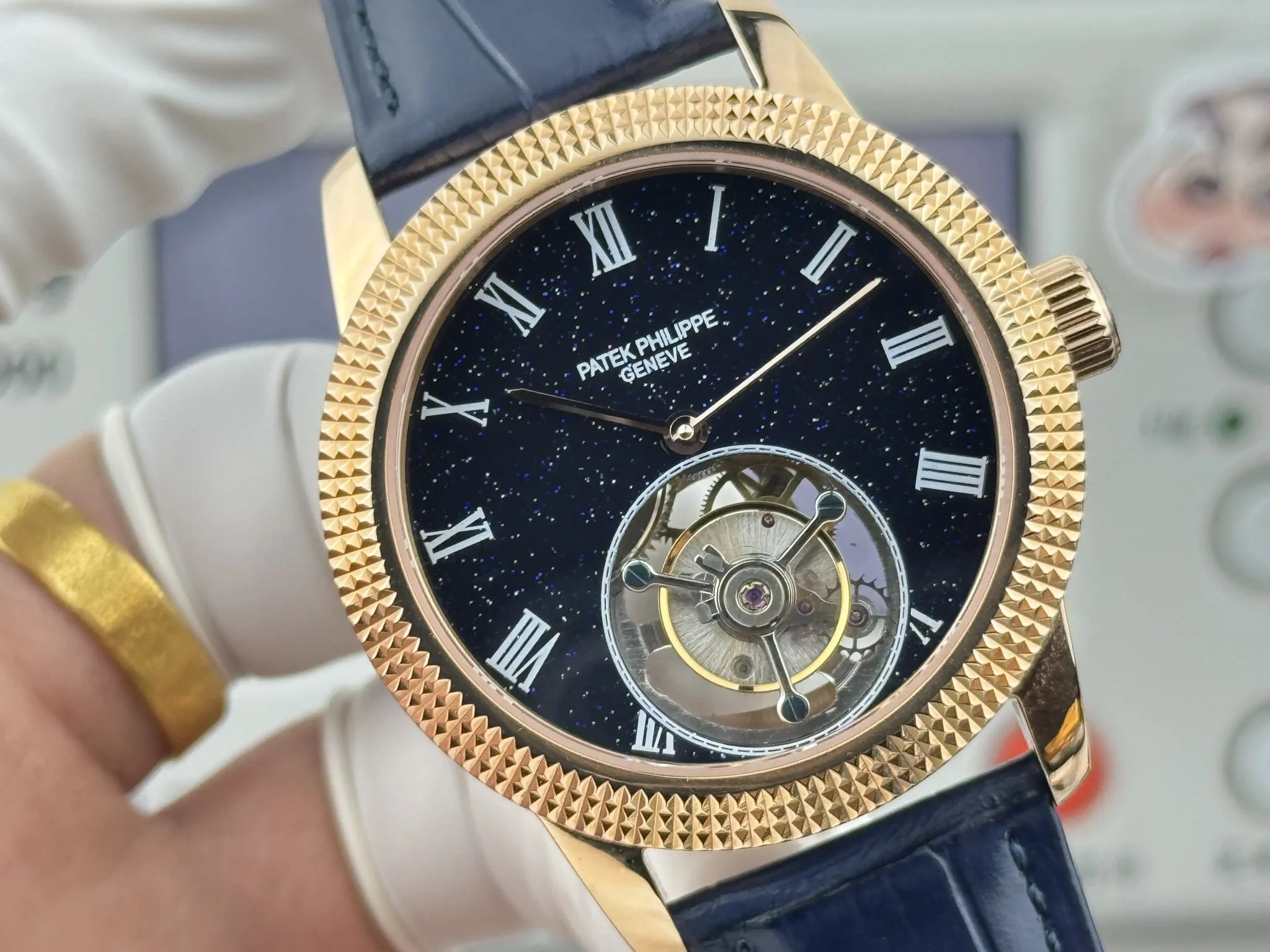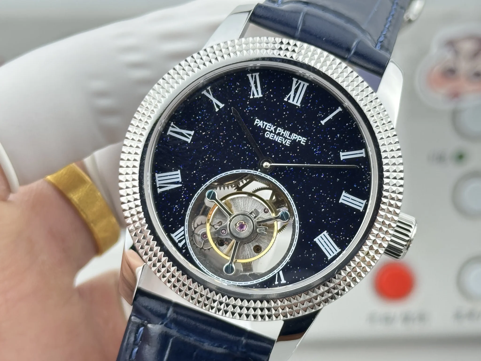 This Replica Patek Philippe Grand Complication Tourbillon combines a night sky dial with a visible tourbillon display in a bold 42mm format. The watch is offered in two case variations: a gold case option and a metal case option. Both keep the same overall layout and wrist presence, so you choose mainly by finish and visual warmth. The dark dial improves contrast and keeps the tourbillon as the main focal point, making the watch suitable for formal and evening wear. It belongs to the