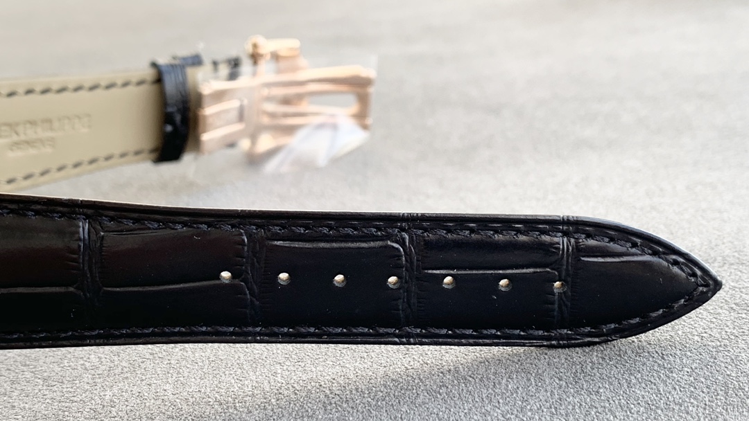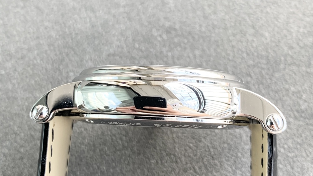 This model offers two case options: gold case or steel case. In addition, it matches the finish with hand options in gold or steel, so the watch keeps a consistent look across variations. Therefore, you can choose warmth (gold tone) or a cooler, more neutral style (steel) without changing the dial layout or complication structure. However, if you prefer a brighter dial for daytime outfits, use Replica Patek Tourbillon Moonphase White Dial as the direct alternative.