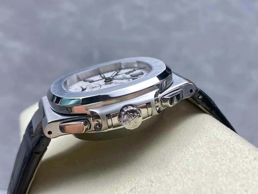 This replica Nautilus 5980-4R is a good option for buyers who want a white dial on leather, a wearable 40.5 mm case size, and practical chronograph features for daily use.